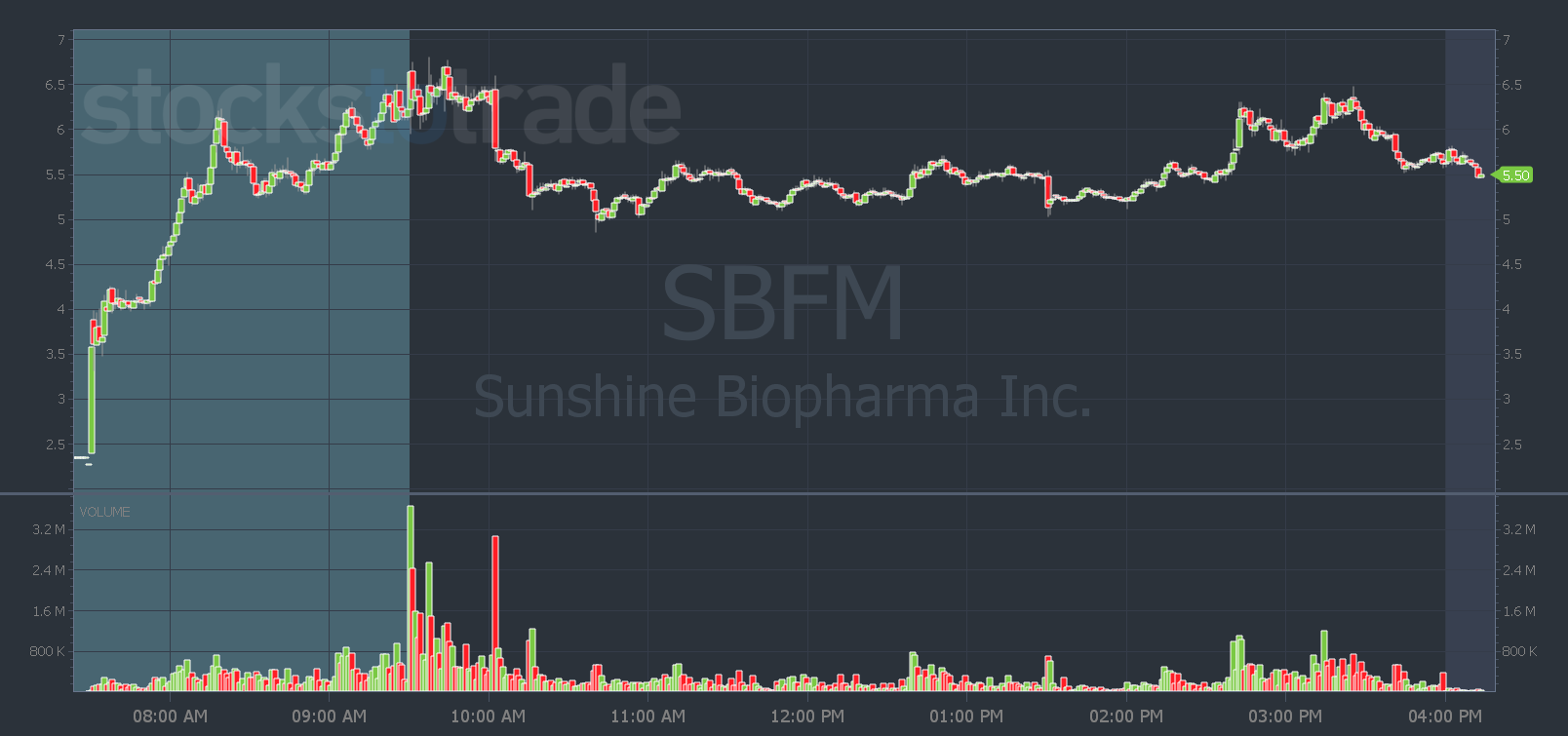 And that was exactly the right way to trade SBFM… SBFM chart: 1-day, 1-minute candle — courtesy of StocksToTrade.com When you're up roughly $1.50 per share in premarket…