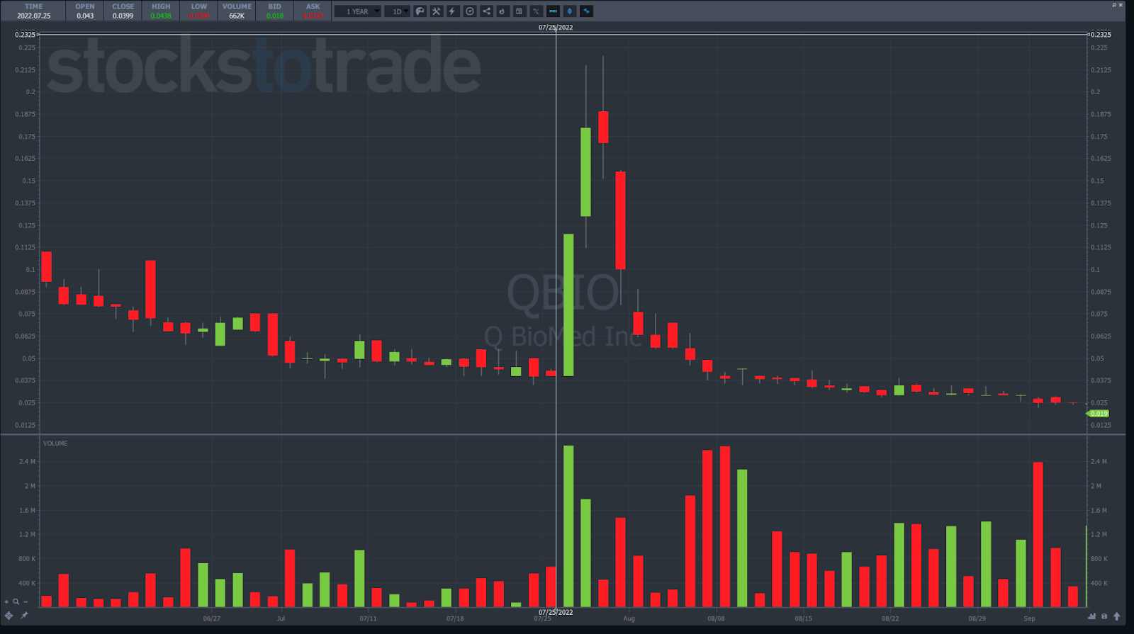 To this day, I'm still amazed when I see this pattern show up in a stock like Q BioMed Inc. (OTC: QBIO).