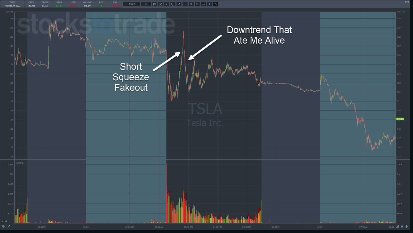Funny enough, this isn't the first time this has happened to me. In fact, my top six losses in 2022 all followed these same blunders. That's fine. We all make mistakes. But I made it worse by averaging down until I had a massive position of 1,000 shares! Promoters on Twitter only show you their wins. However, losses can teach us just as much, if not more. And this one has three great lessons that can help you avoid huge drawdowns and win more trades. |