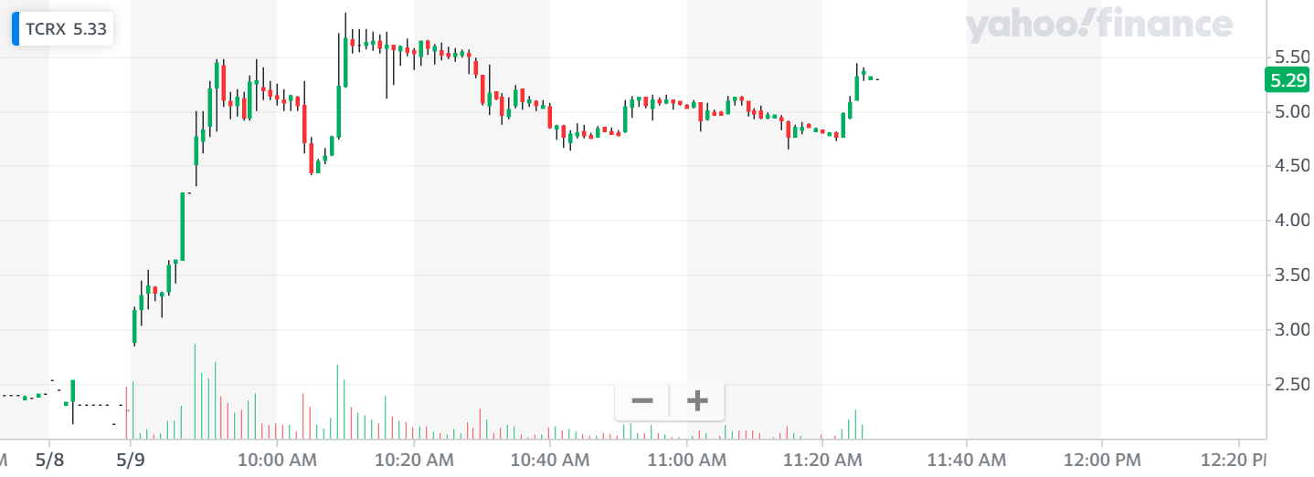 Even today, with a lazy overall market … TScan Therapeutics Inc. (NASDAQ: TCRX) spiked over 160%.