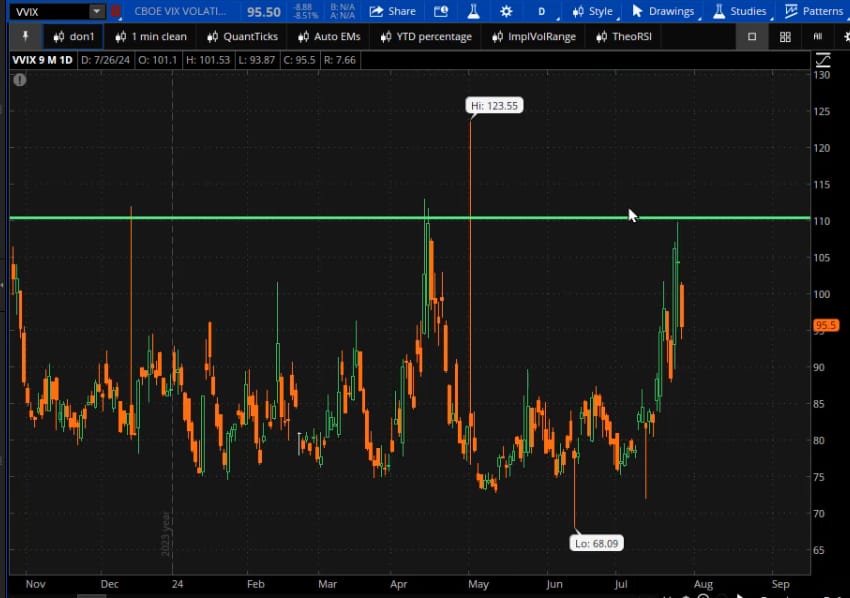 | | | We've got an explosive week ahead, so I decided to prepare this video for you. | If you've been warning about volatility for a while now. Well, guess what? The beast is finally stirring, and it's time to keep those helmets strapped on tight! | Let's dive right into what's happening in the markets, because there's a lot to unpack as we head into an important week of trading. |  | VVIX is the volatility of the VIX |