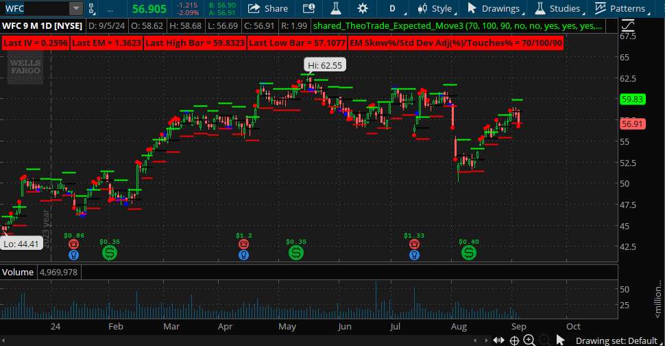 Yesterday I bought an Oct 4 $59/$57 put spread in WFC utilizing my In/Out Strategy. |