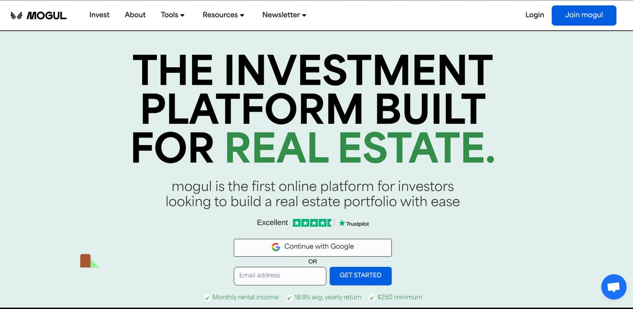 | | Mogul provides direct investment opportunities into institutional quality residential assets for minimums as low as $250. Properties are vetted by founders with $10B of real estate investment experience at Goldman Sachs. Average IRR of 18.8% compared to fractional RE platform average of 0 - 3% $10M invested in 2024 ~20x user growth from 2023 to 2024 without any marketing spend.