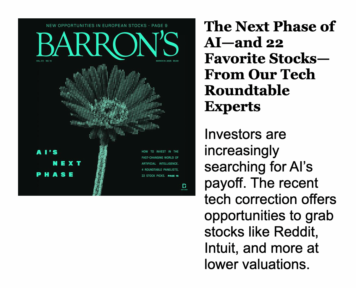 Don't get sucked into what Barron's is selling this week. We're watching AI stocks face a significant amount of pressure. With momentum weak, the AI trade could get a one or two-day Barron's bump… but that might not last long. |