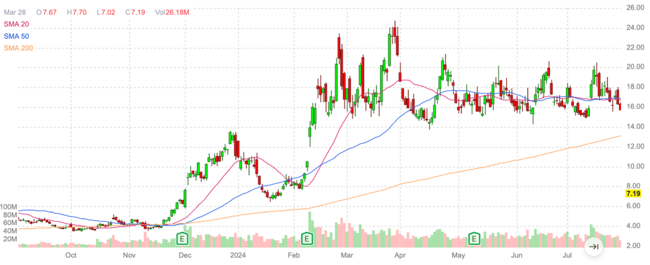 I'm a bit more conservative - and I like to set tight stops and trade around specific moving averages. If we look at CLSK, for example, the 20-day moving average is a great place to trade. If it breaks above the 20-day, buy it. If it drops under, sell it. |