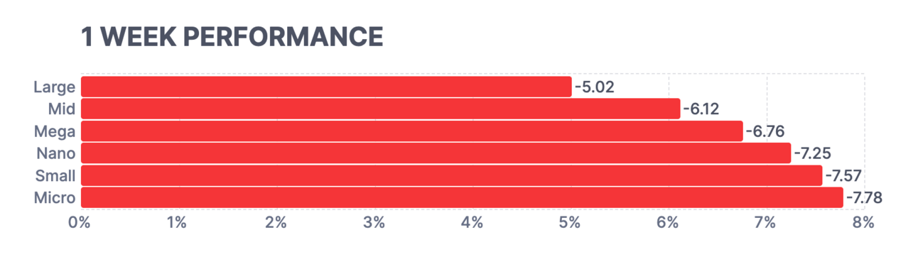 And the smaller S&P 500 names like Invesco (IVZ), APA Corporation (APA), Mohawk Industries (MHK), and Enphase Energy (ENPH). There's very little discrimination in this selling… evident by the weekly declines in stocks by market capitalization. |