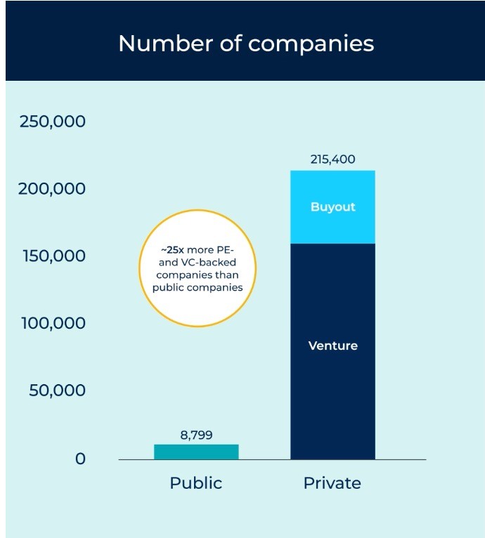 But nearly 25X more companies go the private equity route...