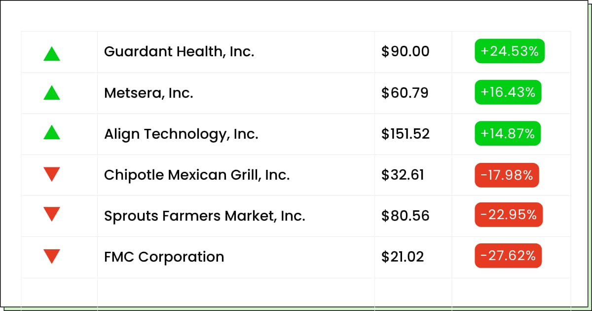 | Chipotle Mexican Grill [CMG]: Premarket Move: −18% | Third sales cut of the year, and the market just lost its appetite. Inflation, softer traffic, and menu price fatigue are a rough combo, even for a fan favorite. | Yes, great brand, long runway, but guidance shrinkage usually means patience pays better than hero buys. | My Take: Watch for stabilization over a few sessions. If comps or margin talk firm up on the next update, you can rebuild a position. Until then, keep it on the watchlist and save the hot sauce. |