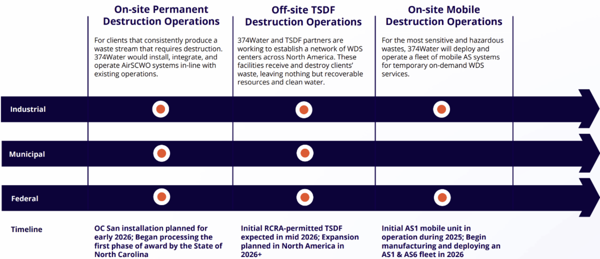 In February 2025, 374Water announced its participation in a highly anticipated DoD project, led by the Defense Innovation Unit (“DIU”) in collaboration with DoD Environmental Security Technology Certification Program ("ESTCP”), to evaluate commercial-scale technology solutions to destroy per- and polyfluoroalkyl (“PFAS”) contaminated wastes. Generally, the DIU focuses on accelerating the adoption of commercial technology to solve operational challenges at speed and scale, and this project was designed to demonstrate and promote the application of technologies that can fully and cost-effectively destroy PFAS-containing wastes.