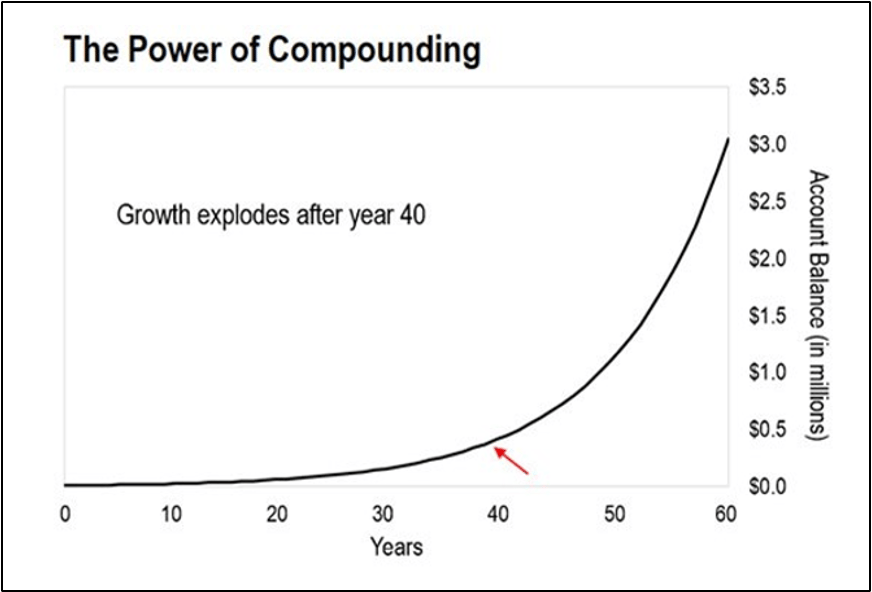 By year 50, it grows to more than $1.2 million. And by year 60, it exceeds $3 million. |