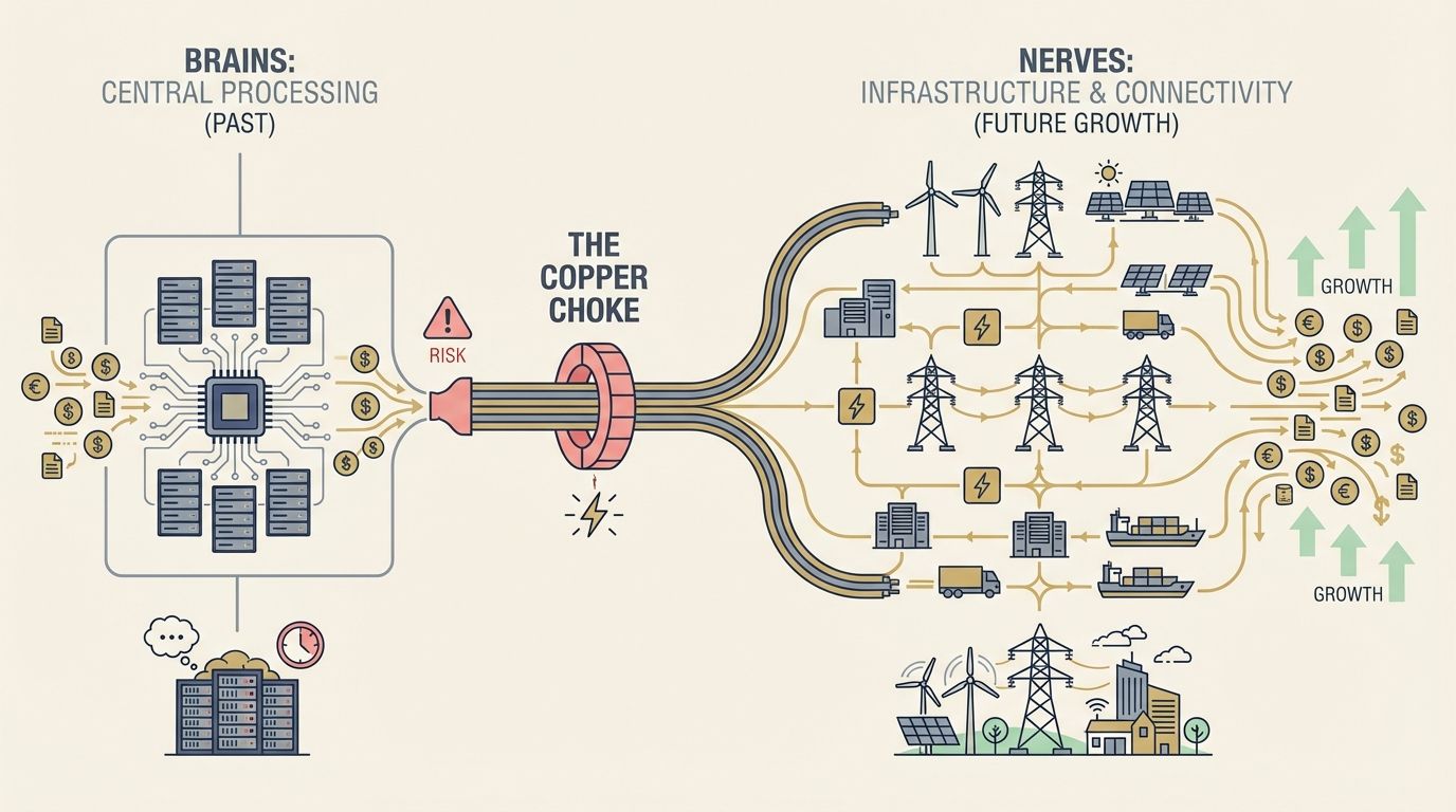 | | | | | Walk into a Tier 1 hyperscale facility in Northern Virginia today, and the first thing you notice isn't the noise. It is the heat. | It is a thick, physical presence—the thermodynamic exhaust of a trillion dollars in capital expenditure burning to process the world's data. For the last three years, the market has been obsessed with the engine of this heat: the GPU. The "Brain." | We have watched the headlines scream about processing power, floating point operations, and the sheer speed of calculation. But if you look past the racks of blinking lights and peer into the floorboards, you see a different story emerging. | The bottleneck has shifted. | We are no longer limited by how fast the chips can think. We are limited by how fast they can talk to each other. | This is not a tech story. It is a structural shift in the physics of computing. | From 2023 to late 2024, the race was about individual intelligence—building a faster Einstein. But as we close out 2025, the game has quietly pivoted to collective intelligence—building a faster telepathy. | The capital allocators who understand this shift are no longer just looking at the processor. They are looking at the plumbing. |