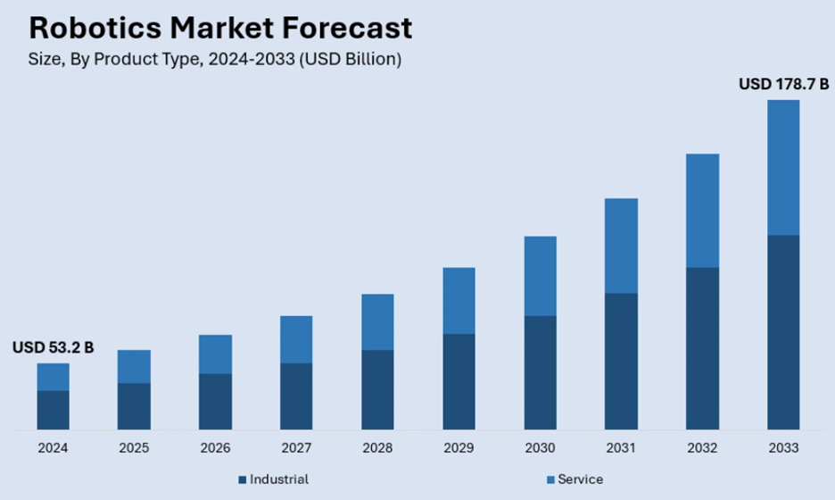 According to recent industry forecasts, the robotics market was valued at roughly $53.2 billion in 2024.