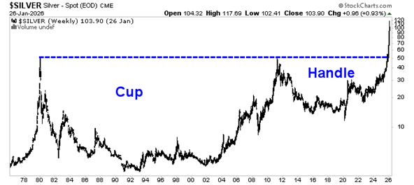 On the chart, you’ll see the cup starts around 1980. The handle starts around 2012 and goes to the present day.
