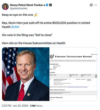Tue, Jan 27 - 8:18 PM UNH down 20% in two days — dodged a bullet. I got out of my position on Monday. Bought it back for $3.00 per spread. 25% profit. Didn’t hit the profit target of 50%. Not because I saw it coming. Because I rather be lucky than good. The Feb short put spread today — $8.50 loss per spread. Deep in the money. Max loss if I didn’t stick to the rule; Don't hold through earnings. Email after the open: “Glad I followed the alert. Did you see the congressman timed his exit too?” Yeah. I saw. Kevin Hern sold $500K in UNH on December 23rd. Sits on the House Subcommittee on Health. “Keep an eye on this one.” Everyone’s screaming “INSIDER TRADING”. 7.5 million views on X. Stock was down 38% on the year. He sold five days before New Year’s. Tax loss. They never even noted when he bought. But makes for a great story. Congressman dumps healthcare stock weeks before it craters. X needs the conspiracy, so he’s a genius now. Still too close for comfort. This brings back that dreaded Mastercard loss in 2010. Managing money and selling deep out-of-the-money puts on MA. Reckless. Made a lot of money for clients doing that. Until it didn’t. Few days to expiration. Options trading for quarters. Was up. Stayed in for the scraps. Then Congress announced they were looking at capping interchange fees on debit cards. What became the Durbin Amendment. Quarters became dollars overnight. Second biggest loss. Learned and lost a lot on that one. It’s tattooed in the head. Don’t pick up pennies on railroad tracks. Never sell options naked. Risk defined, all the time. They’re calling him an insider. I keep saying tax loss like I’m his lawyer. About This Journal: Every entry documents what really happens at my desk. The losses, wins, and everything between. Trading Alliance -- every alert, every research report. Group Mentorship -- the craft behind the trades. Josh Belanger's results are not typical and are not a guarantee of your success. Josh is an experienced investor and your results will vary depending on education, work experience, and background. Josh does not personally participate in every investment alert he provides. Due to sensitivity of financial information, we do not know or track the typical results of our students. Josh’ strategies may not always be accurate, and his investments may not always be profitable. They could result in a loss of an entire investment. We cannot guarantee that you will make money or that you will be successful if you employ his trading strategies specifically or generally. Consequently, your results may significantly vary from his. We do not give investment, tax, or other professional advice. Reference to specific securities should not be construed as a recommendation to buy, sell or hold that security. Specific securities are mentioned for informational purposes only. All investments involve risk, and the past performance of a security, industry, sector, market, financial product, investment strategy, or individual’s investment does not guarantee future results or returns. Investors are fully responsible for any investment decisions they make. Such decisions should be based solely on an evaluation of their financial circumstances, investment objectives, risk tolerance, and liquidity needs. |