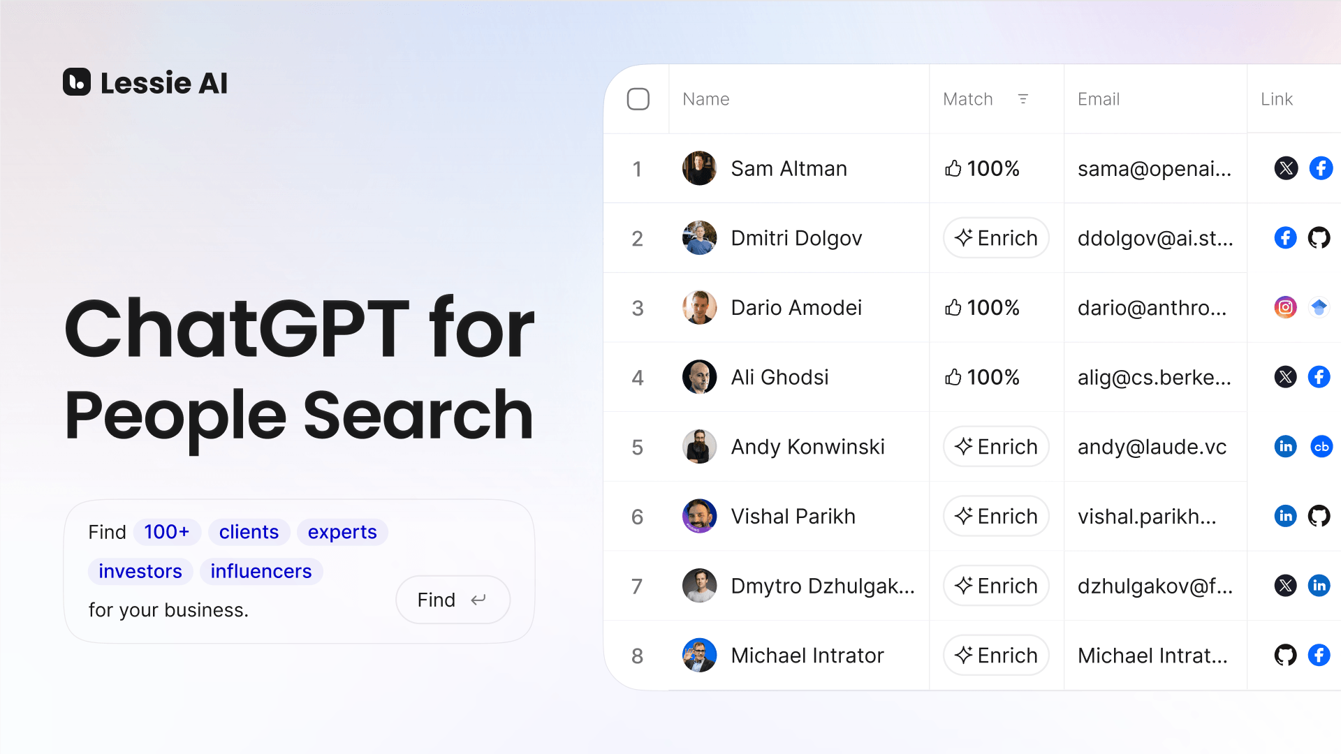 | | PRESENTED BY LESSIE AI | | | The Rundown: Tell Lessie AI who you're trying to reach, and it will explore 100+ premium sources plus the open web to surface verified clients, talent, influencers, and partners. | With Lessie, you can: | Search using natural language instead of complicated filters or Boolean queries Surface the most relevant contacts first with intelligent AI ranking Automate personalized outreach messages and follow-ups
