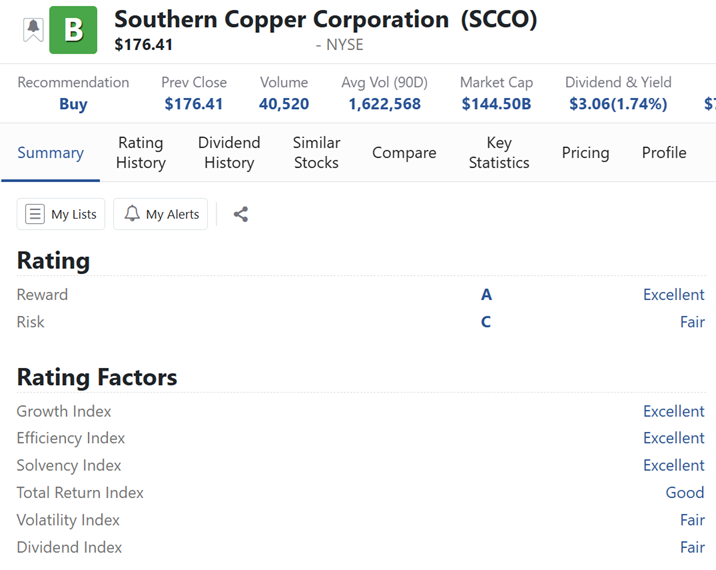 For example, the Weiss Ratings system is still assigning Southern Copper (SCCO) a “B” rating.