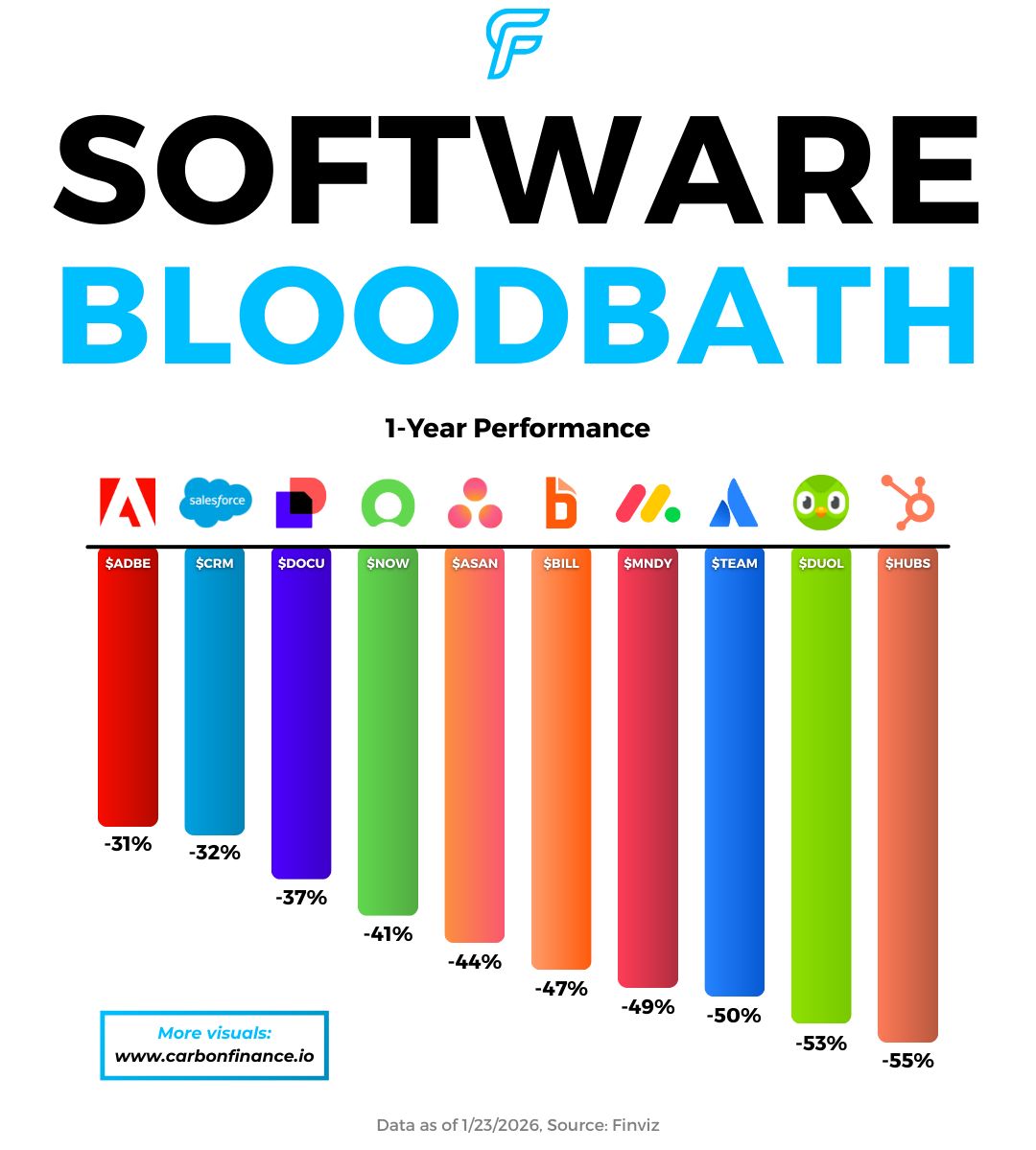 Software stocks are getting hit hard. |