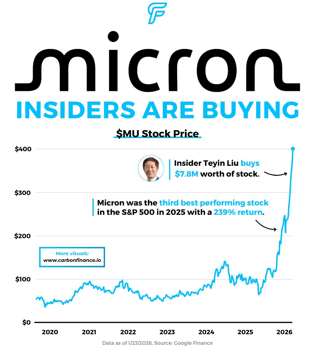 On January 13 and 14, Micron director Teyin Liu purchased 23,200 shares of Micron Technology, spending nearly $8M. |