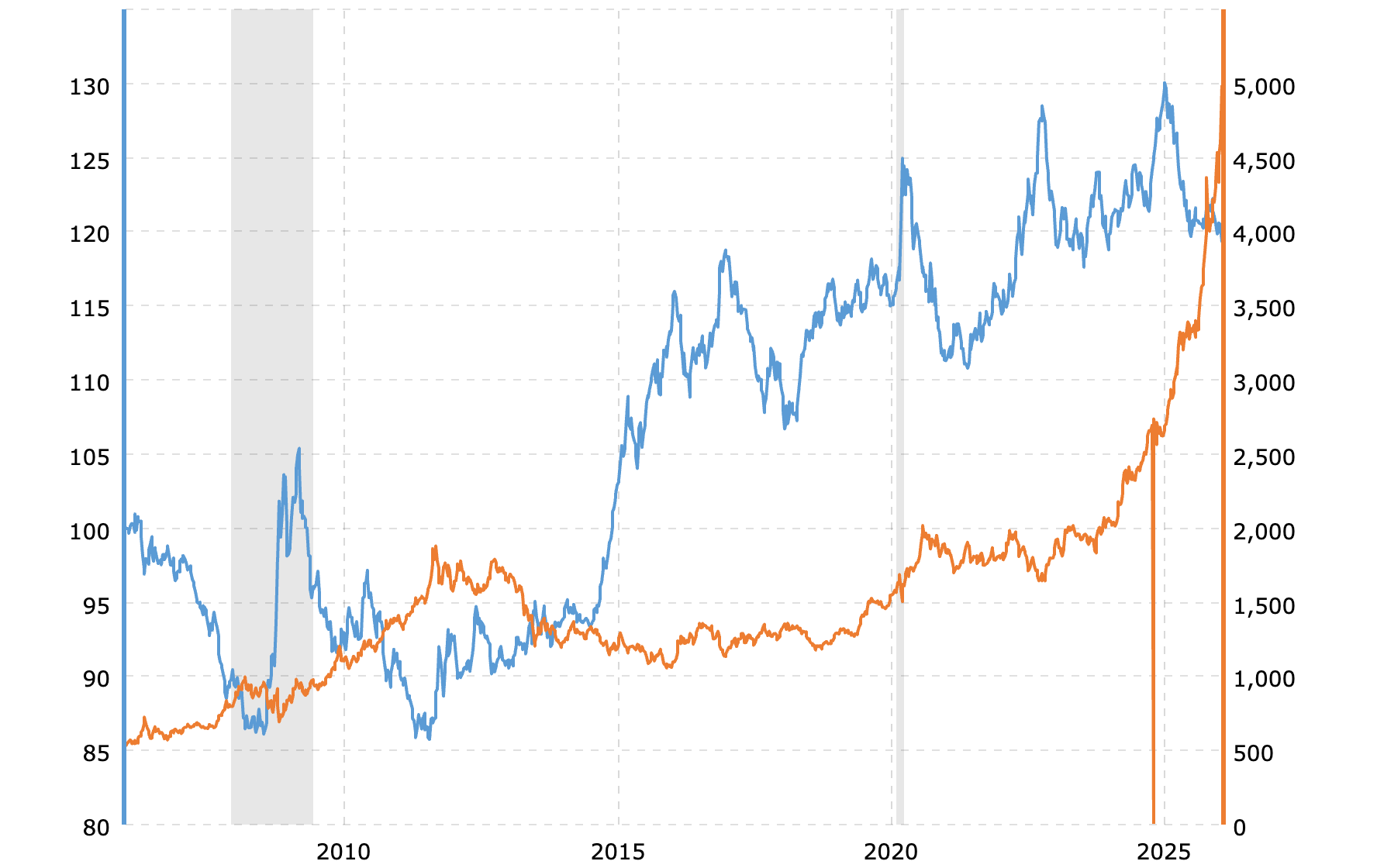 And gold? It's hitting record highs above $5,300 per ounce. |