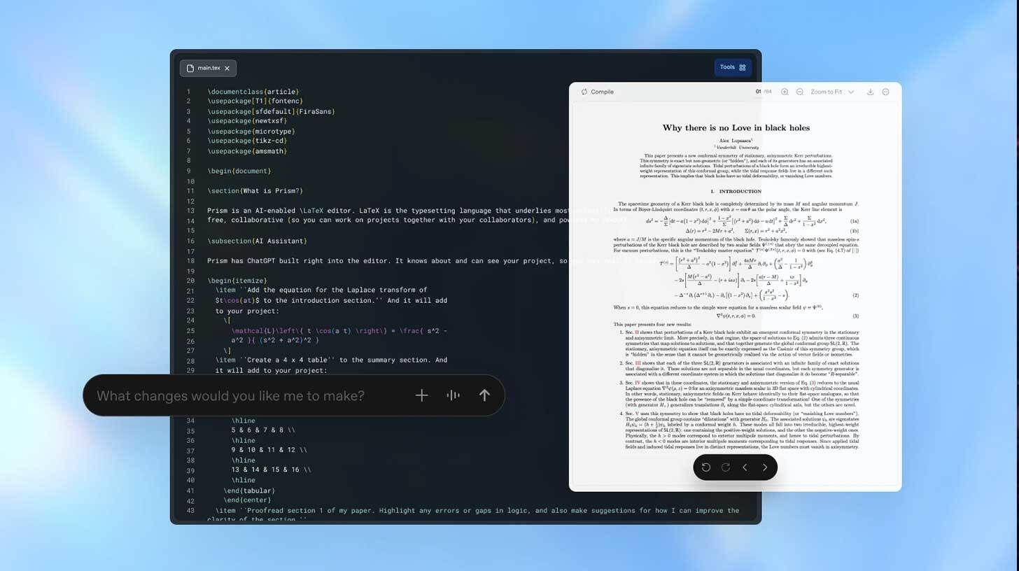 | The Rundown: OpenAI just launched Prism, a free research tool that puts its most advanced reasoning model inside the scientific writing process — aiming to do for research what AI coding assistants did for software development over the past year. | The details: | The tool came from OpenAI's acquisition of Crixet, a cloud-based science writing platform, which it rebuilt around its latest GPT 5.2 reasoning model. Scientists can search for papers, auto-generate citations, and turn photos of whiteboard math into formatted equations, without leaving the document. OpenAI revealed ChatGPT fields over 8M weekly queries on hard science topics, suggesting researchers are already leaning heavily on AI. The free tool has no caps on team size or projects, a departure from typical expensive academic software pricing models.