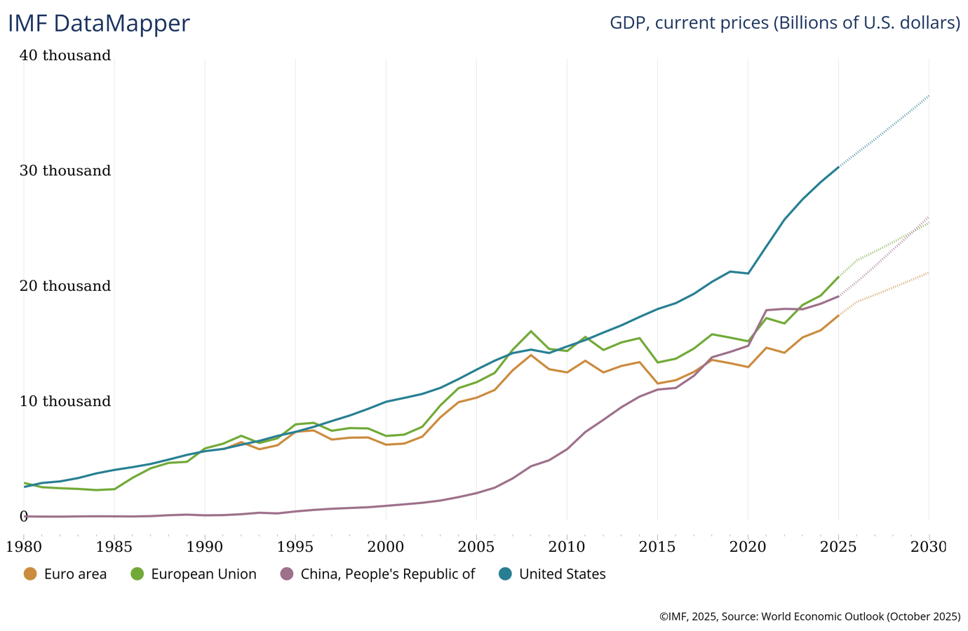 The numbers are staggering. If the European Union operated as one country, it would rival both the U.S. and China in almost every metric that matters. |