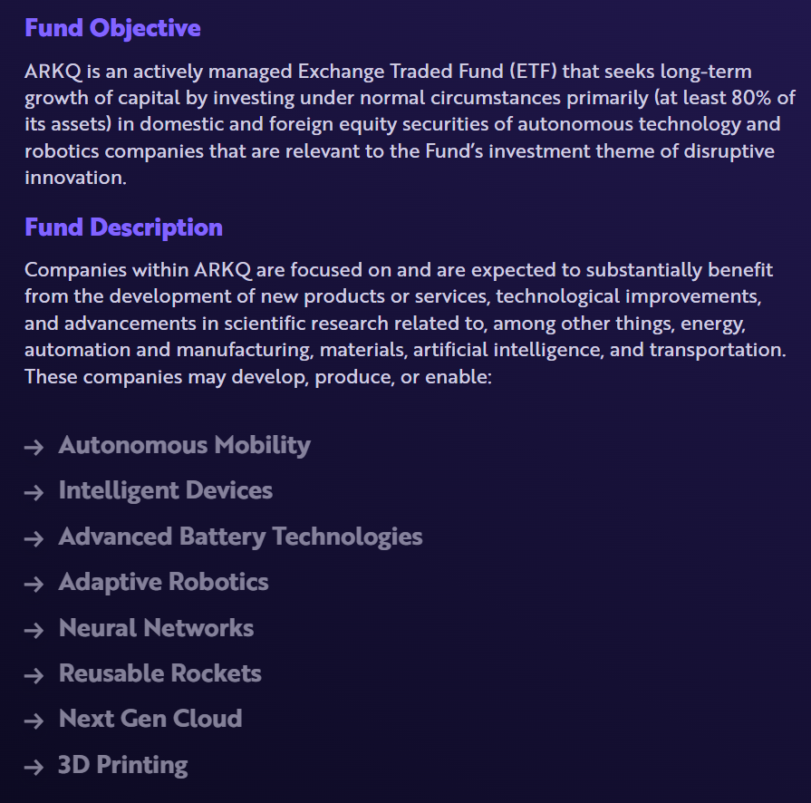 As for ARKQ, this fund gives us exposure to multiple robotics firms. The ETF has 38 stocks in its portfolio.