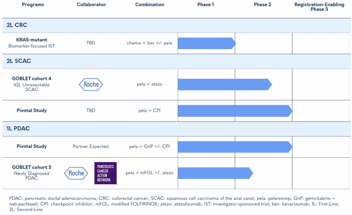 Pelareorep has demonstrated encouraging results in multiple first-line pancreatic cancer studies, two randomized Phase 2 studies in metastatic breast cancer, and early-phase studies in anal and colorectal cancer.