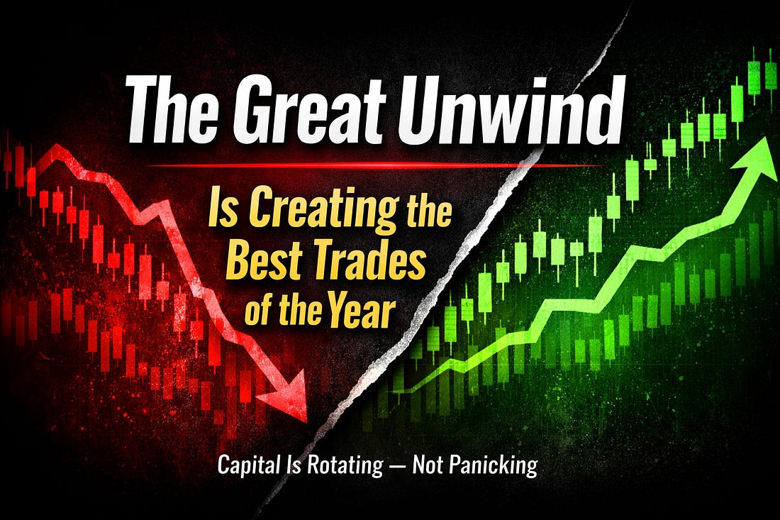 The Great Unwind Is Creating the Best Trades of the YearThis rotation explains why some stocks surged while others broke — and how to spot the next move forming.Capital Rotation When Risk Assets Broke and Rotation BeganThis past week didn’t feel like a normal rally. It felt like an inflection. After months of relentless speculation, risk assets cracked, and the world noticed. Cryptocurrency, once the avatar of macro exuberance, delivered its worst week in years before stabilizing on Friday. Bitcoin plunged, wiping trillions off the crypto market cap and sparking forced liquidations across futures and derivatives markets. Traders retreated from crowded speculative setups and into durable, cash-generating businesses. At the same time, Washington politics bled into the discount rate. Nomination headlines around the next Federal Reserve chair — and deeper political wounds surrounding the current Chair — forced portfolio managers to price policy uncertainty into valuations. That uncertainty rippled through macro markets, boosting traditionally defensive plays and cyclicals alike. By week’s end, momentum wasn’t defined by tech euphoria. It was defined by rotation away from fragility into resilience — and opportunistic rebounds with real structural narratives beneath them. The “old narrative” of buy-the-dip in anything risk-on gave way to a more pragmatic story: where can capital find certainty when volatility erupts and macro clarity fades? Market Context Snapshot: What Actually HappenedCrypto Selloff + Liquidations (Risk-Off Spark) Policy & Fed Narrative Shift Tech Volatility + Sector Divergence These narratives anchored the rotation we saw in individual names — money wasn’t flowing aimlessly, it was flowing where earnings durability and structural trends met real conviction. Rotation Themes and Quantity WinnersBelow are the thematic buckets that absorbed capital this week. These are not arbitrary groupings — they reflect where money actually moved, and why. 1) Solar & Clean Energy Hardware — Bounce + Structural DemandThematic drivers: Solar demand resilience, energy transition hardware deploying broadly, short-covering and fundamental re-rating. Top performers: