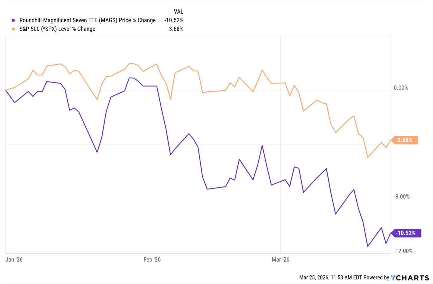 Those are represented by the Roundhill Magnificent Seven ETF (MAGS).