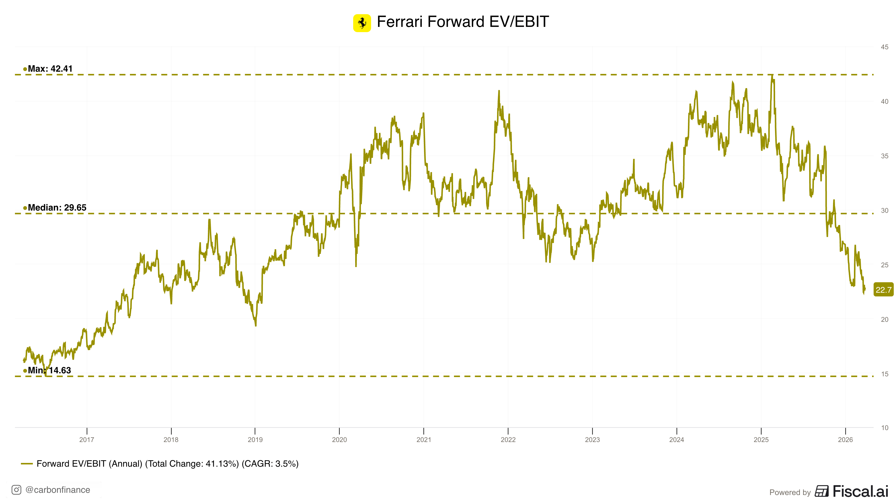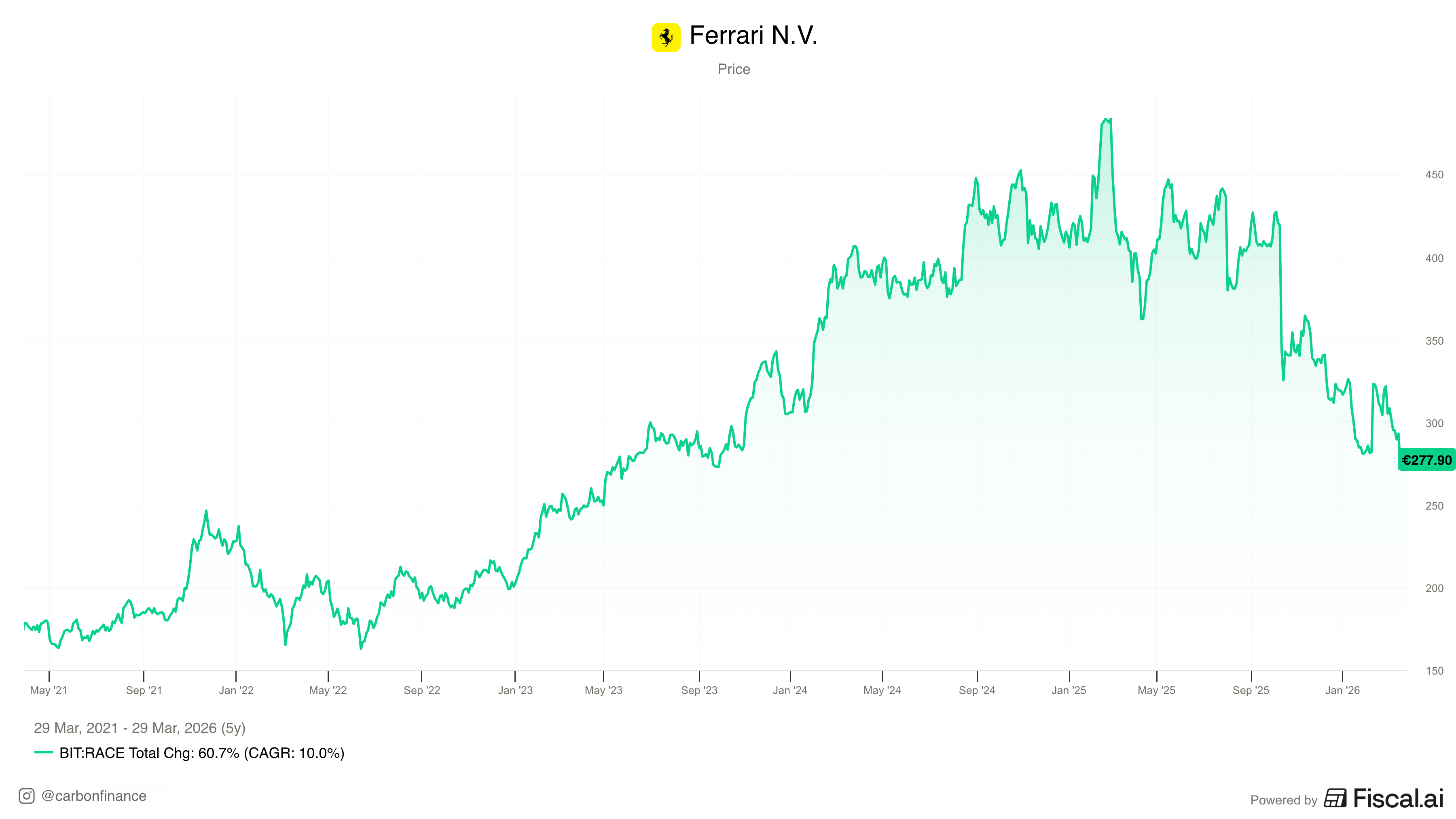 | Every so often, the market gives us an opportunity to buy quality businesses at a fair price. Sometimes, it even punishes them far below what they're worth. | The market has struggled this year, and this past week, the selling accelerated. The Nasdaq 100 has officially entered a correction, and the S&P 500 is close behind. After a few years of strong returns with only a few blips, a bear market wouldn't come as a surprise and would be greatly welcomed. | Regardless of what happens from here, there are names already trading at attractive levels today. If the market corrects further, they only get more compelling. | I've identified 10 businesses at the very top of my watchlist, the names most likely to earn a spot in the Carbon Capital portfolio. Below are the first 5, and the remaining 5 will be sent next week. I may enter positions across any of these names in the coming days or weeks. | Over time, I plan to write a full deep dive on each of these businesses and review their earnings reports regularly, sharing my notes and takeaways along the way. | At the end of this email, I'll also share updates to the portfolio and other important notes. | Let's dive in. | Disclaimer: This is not financial or investment advice. I'm sharing my personal investment decisions and reasoning for educational and informational purposes. Always do your own research before making any investment decisions. | | V. Ferrari ($RACE) | | What does Ferrari do? | Who wouldn't love to own a Ferrari one day? Founded nearly 80 years ago, Ferrari designs, manufactures, and sells luxury performance sports cars. Cars and spare parts make up the vast majority of revenue, but the company also generates revenue from Formula 1 sponsorships, brand licensing, and lifestyle merchandise. | Why is the stock down? | 1/ Conservative Long-Term Guidance — At its Capital Markets Day in October 2025, Ferrari issued a 2030 revenue target of €9B, reflecting a sales CAGR of just 5% over the next five years. The company has a 5-year revenue CAGR of 16%, so this represents a considerable slowdown from historical growth. | 2/ EV Scaleback — Ferrari originally targeted 40% of vehicle sales from fully electric models by 2030. However, that figure was reduced to 20% at the same Capital Markets Day. According to Reuters, the company has also delayed its second fully electric model to at least 2028, as demand for high-performance EVs is effectively "zero". Investors continue to question whether Ferrari can navigate a transition to a fully electric world. | 3/ Iran War Headwinds — In early March, Ferrari suspended all shipments to the Middle East due to the ongoing war in Iran. Many buyers in the UAE, Qatar, and Saudi Arabia are known for the highest levels of personalization, making them disproportionately valuable customers. Beyond lost shipments, the war could also drive up European energy prices and production costs, pressuring margins. | 4/ U.S. Tariff Exposure — The U.S. initially imposed a 25% tariff on European-made vehicles in early 2025, before a deal with the EU in July reduced it to 15%. The Americas make up 31% of Ferrari's total revenue, and Ferrari manufactures exclusively in Italy, meaning there is no way to get around these tariffs. Any further escalation between the EU and U.S. poses a direct threat to margins. | Why is it an opportunity? | 1/ Sandbagging Culture — Ferrari has a reputation for sandbagging guidance. They hit their 2026 targets a full year early in 2025. At just a 5% revenue CAGR guide, the company has built a significant cushion to outperform, with the order book sold out through 2027 and demand consistently exceeding supply. More importantly, the conservative guidance also serves a deeper purpose. In luxury, excessive growth can be a brand killer. By limiting volume targets, Ferrari protects its reputation and ensures demand stays robust. | 2/ EV Misread — At the end of the day, Ferrari's customers want powerful, high-performance engines. Additionally, weak EV demand isn't unique to Ferrari either, it's consistent across luxury automakers. The delay of its second fully electric model to 2028 gives Ferrari extra time to develop in-house technology focused on lighter batteries and sustained power output, and internal sources view that second model as the real game changer, not the first. As a low-volume producer, Ferrari also faces far less regulatory pressure than mass-market brands and will likely be eligible for derogation under current and future emissions frameworks. | 3/ Contained Exposure — The Middle East accounts for about 5% of shipments, which isn't massive, and Ferrari can supplement lost volume with orders from other regions. Logistical workarounds, like air freight, are in place. This is a short-term headwind, not a structural issue. | 4/ Premier Pricing Power — Ferrari arguably has the strongest pricing power of any brand in the world, and its customers are price insensitive. The company has already implemented select 10% price hikes on high-demand models to offset tariff impact. If tariffs escalate further, Ferrari has the brand strength to pass costs through without destroying demand. | Valuation | | As recently as February 2025, Ferrari was trading at a nosebleed 42x forward EV/EBIT. That premium left no room for error. Today, that figure has fallen to 23x, well below its historical median of 30x and its lowest level in nearly 7 years. It's highly unlikely Ferrari will ever return to its early post-IPO valuation of 15x, as the market has already recognized the durability of the business. However, at 23x, the risk/reward profile has significantly improved. | My Take | Ferrari is one of the best businesses ever created. It's a luxury house, not a car company, and it doesn't follow the rules of the auto industry. Its pricing power is unmatched, its brand is one of the most iconic in the world, and its ability to withstand economic cycles is rare. You can't just walk in and buy a Ferr