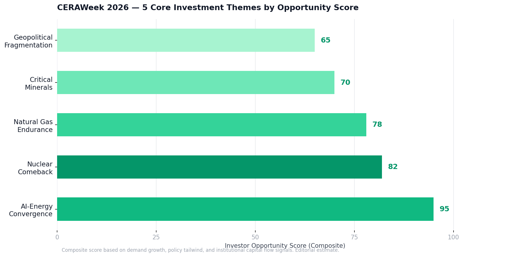 CERAWeek 2026 didn't just cover energy — it revealed that energy IS the critical infrastructure of the 21st-century economy. AI runs on electricity. Electricity needs gas, nuclear, and a grid that's a decade behind. OXY +62%. XOM +43%. NVDA −11%. The market is telling you something. The question is whether you're listening. |