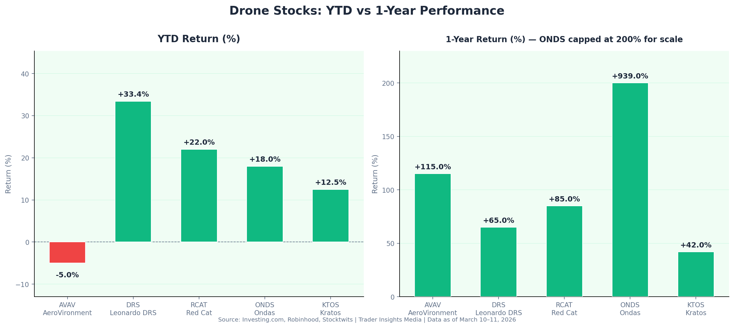 Here's the honest part: Red Cat makes short-range, squad-level drones. Some analysts note these likely weren't deployed in the Iran strikes directly. But the company is in the right sector at the right time, with exposure to the growing demand for small, cheap tactical drones. High upside potential, high volatility, high risk. Not for the faint-hearted. |
