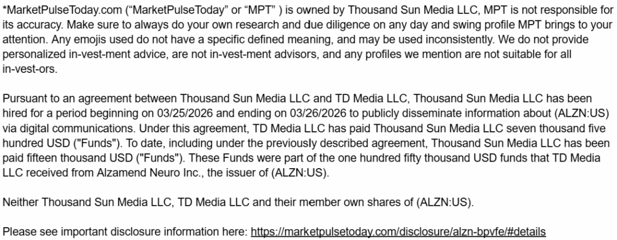 That growing interest helps explain why Alzamend Neuro, Inc. (Nasdaq: ALZN) landed on our radar and is topping our watchlist this Thursday.