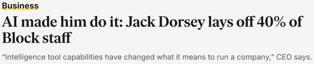 That pop came after Dorsey announced plans to slash his workforce in half thanks to AI.