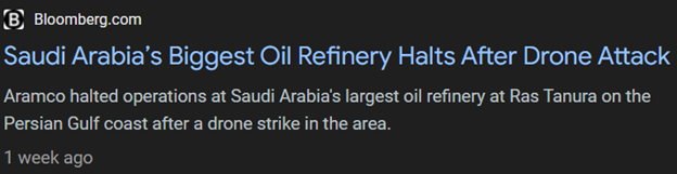 Accordingly, any operational downtime at Ras Tanura and other key petroleum loading/refining facilities — all within easy Iranian drone range — can quickly cause turmoil in global markets.