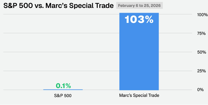 | Dear Subscriber, Since May, Marc Lichtenfeld has been doing something most traders would never dare to try... Placing the exact same trade... On the same ticker... On the same day... At the same time - week after week... month after month. And the results have been remarkable. In fact, this strategy was recently named "Model Portfolio of the Year" when stacked up against 67 competing research services. Through bull runs. Through pullbacks. Through some of the most unpredictable volatility we've seen. But the moment that really caught our attention happened just recently... Marc closed out a trade for 103% gains in just three weeks. That's when we knew we needed to get more Members into his next trading strategy session. I'm sure everyone could use this kind of edge right now! We rarely open the doors to this. But given the current market environment, we didn't want you to be left out. Go here now to see the details and reserve your spot. Good investing, Rachel |