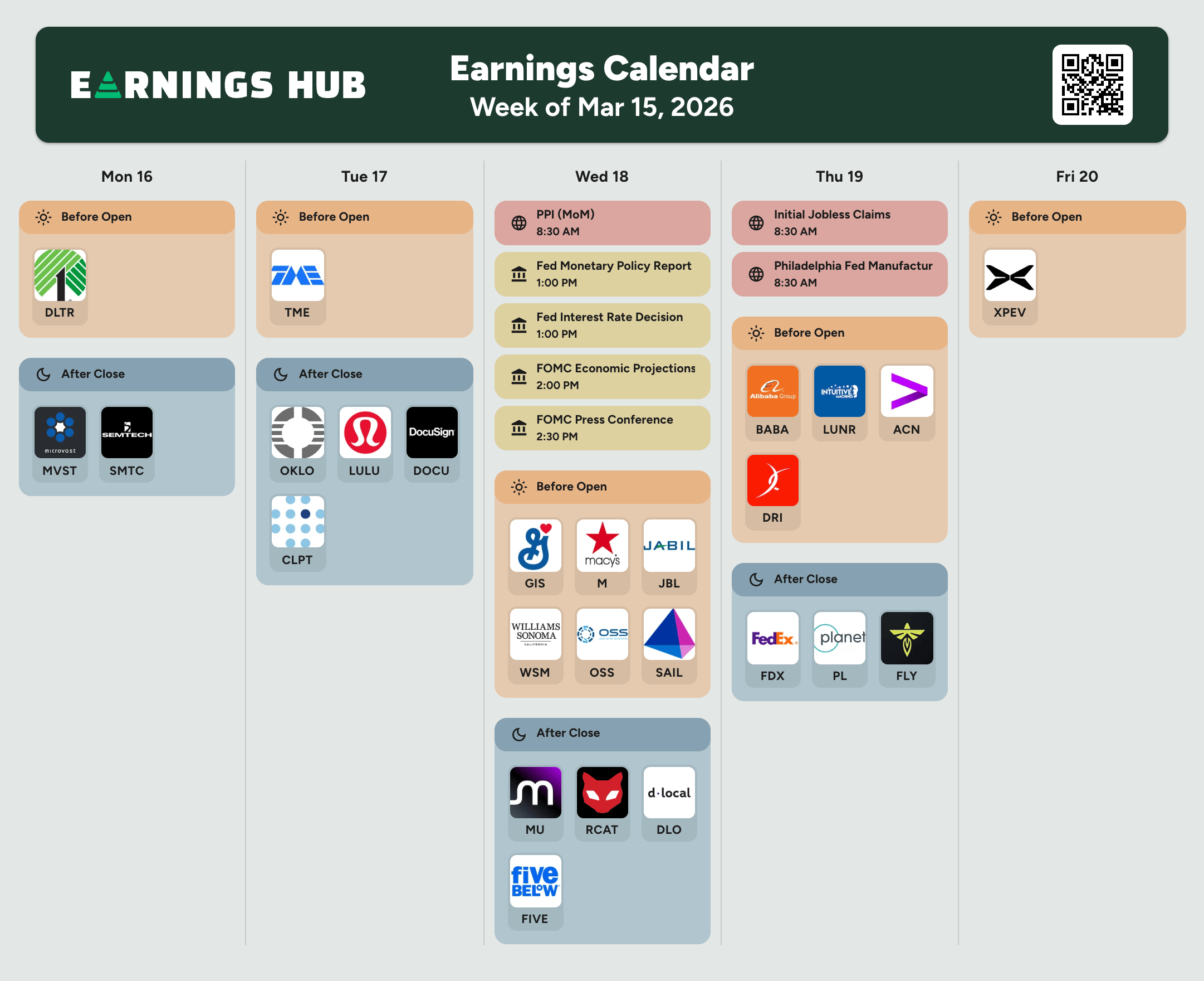 Notable Companies Reporting Earnings Week of March 15, 2026: |
