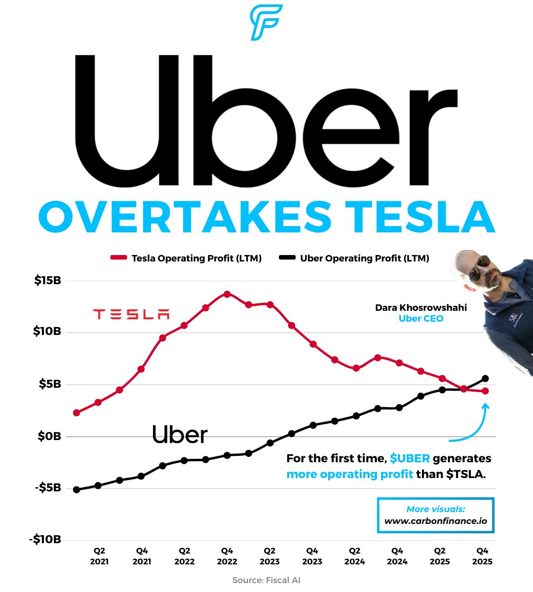 Yet today, Uber is the one generating more operating profit. |