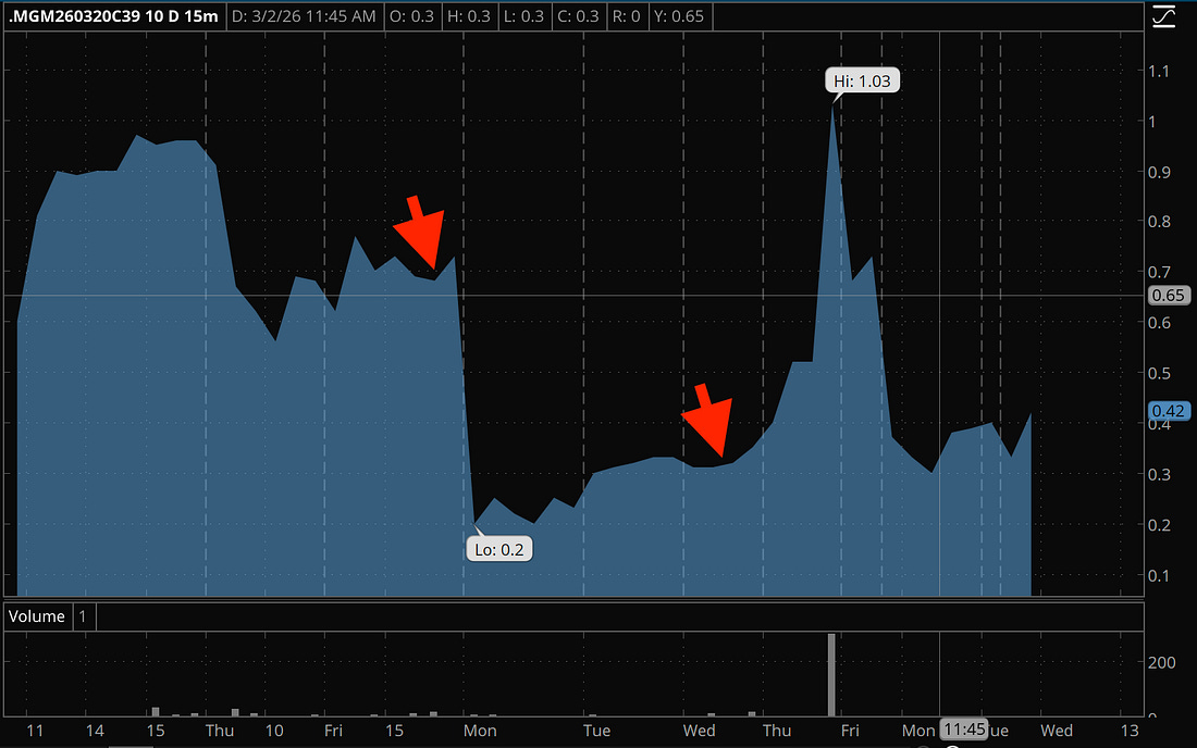 Most of my trading journal never gets published. But last week I took an $8,300 loss — and how I handled it is exactly why risk management matters more than any single trade. Thu Feb 26 - 3:47 PM Thought Monday was going to be a slower trading day. East coast getting hammered by snowstorm. Worst in years. Schools closed. But several alerts going off right at the open -- stop loss triggered... stop loss triggered. AI stocks slammed... MGM. Stock down 4.5% at the open?!?! Looking for news. No news. Friday, looked like an A+ setup. U-Turn Velocity triggered, 4-1, 256% overall return the last two years. Last trigger hit profit in three days. Earnings behind us, just reported BetMGM’s first profit. Revenue beat. Net income nearly doubled. Bought the Mar 20 $39 calls at $0.70. Stock at $36.90. One headline: “Viral Citrini Substack Post That Has Sparked New AI Worries on Wall Street” That research was about AI disruption. That’s not MGM. The storm hit airlines. Airlines are down, makes sense. The calls we bought at $0.25. Down 64%. Tariff news? Shares were higher before the Supreme Court ruled tariffs were unconstitutional. No idea why shares are down... now 5%. Wrote the sell alert for members, complete opposite direction. Trading volumes are light -- market is wrong. Look at my own position. 25 days left on these. The selling doesn’t make sense. But I’m wrong right now - rules are rules though. Put my order to sell em at $0.25. Market drops. Cancelled. Won’t sell this far in the hole. Sold em Wednesday at $0.35. Today, heard the take profit alert for MGM. MGM up 8.4%. Options hit the original 50% profit target. Members exited at the stop. I held a two days longer. System was right, the market has other plans. That’s trading, onto the next. -$8,300. About This Journal: Every entry documents what really happens at my desk — the losses, wins, and everything between — from an ex-Wall Street trader who’s been in the markets for 22 years. Trading Alliance -- Every alert I send, every research report I write, real-time. Group Mentorship -- I’ll teach you how to trade. The real way. Josh Belanger's results are not typical and are not a guarantee of your success. Josh is an experienced investor and your results will vary depending on education, work experience, and background. Josh does not personally participate in every investment alert he provides. Due to sensitivity of financial information, we do not know or track the typical results of our students. Josh’ strategies may not always be accurate, and his investments may not always be profitable. They could result in a loss of an entire investment. We cannot guarantee that you will make money or that you will be successful if you employ his trading strategies specifically or generally. Consequently, your results may significantly vary from his. We do not give investment, tax, or other professional advice. Reference to specific securities should not be construed as a recommendation to buy, sell or hold that security. Specific securities are mentioned for informational purposes only. All investments involve risk, and the past performance of a security, industry, sector, market, financial product, investment strategy, or individual’s investment does not guarantee future results or returns. Investors are fully responsible for any investment decisions they make. Such decisions should be based solely on an evaluation of their financial circumstances, investment objectives, risk tolerance, and liquidity needs. |