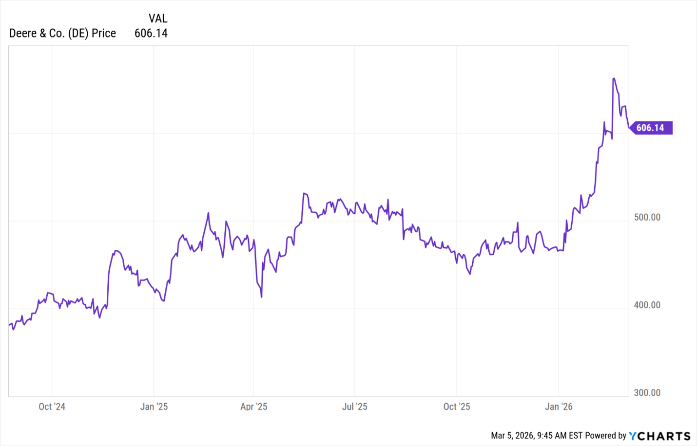 As you can see, it has more than doubled DE and the broad market over the past five years: