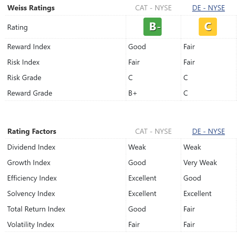 CAT also scores better on its Reward Grade, as well as our proprietary Growth, Efficiency and Total Return indices.