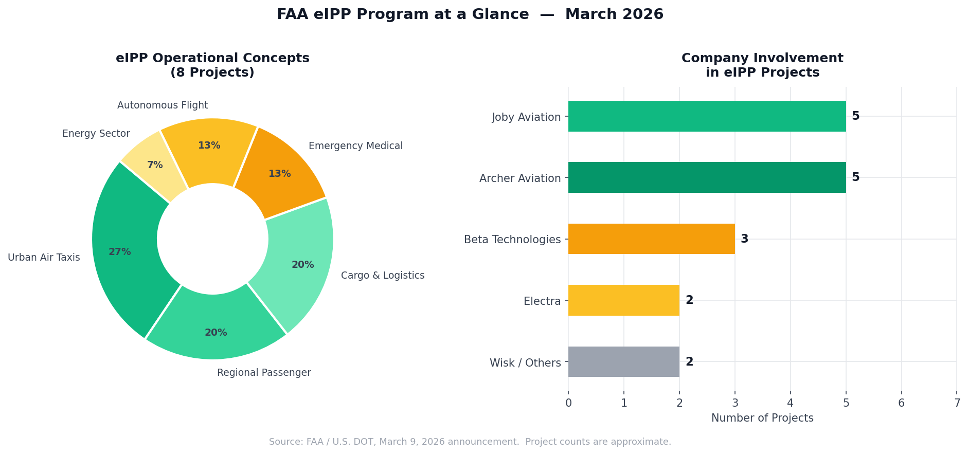 The U.S. Department of Transportation and the FAA announced the launch of the eVTOL Integration Pilot Program, known as the eIPP. Eight projects were selected from more than 30 proposals, spanning 26 states and involving some of the most closely watched companies in aviation right now. |
