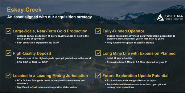 New Development: Eskay Creek Gold Stream Acquisition |