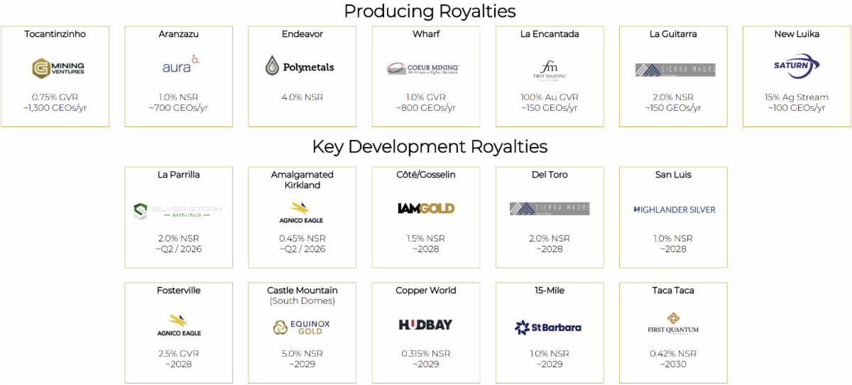 - A record breaking 2025 fiscal year, recording revenue of $11.7Mn, cash flow from operating activities of $4.4Mn, and Adjusted EBITDA of $4.7Mn (see Non-IFRS Financial Measures). All of which were annual records for the Company and represented a 100% increase to revenue, 271% increase to cash flow from operating activities, and a 228% increase to Adjusted EBITDA compared to the 2024 fiscal year. The Company also recorded a net loss of $4.2Mn versus a net loss from 2024 of $5.5Mn, and received or accrued payments on 3,436 Go-ld Equivalent Ounces ("GEOs") (see Non-IFRS Financial Measures), which was a 38% increase compared to 2024